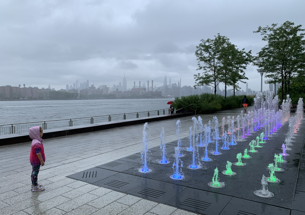 Przywitanie z Williamsburgiem było osobliwe, bo zeszliśmy ze stacji metra na uliczkę kojarzącą się bardziej z Bangkokiem niż Nowym Jorkiem, ale im bliżej do rzeki, tym lepsze wrażenie. Sam Domino Park to jeden z nowszych parków na Brooklynie. Otwarty w 2018 roku, zaprojektowany przez James Cornera odpowiedzialnego także za nowojorską High Line. Ogromny plac zabaw, nawiązania do przeszłości (dawna fabryka cukru), wybieg dla psów, restauracje i niesamowite widoki na Manhattan! W deszczu równie niesamowite, bo Manhattan spowiła mgła. Krótki spacerek i wylądowaliśmy na marinie, z której odpływają promy na Manhattan. Za zaledwie 2 dolary „z hakiem” można się przepłynąć omijając mosty. Pływać jeszcze będziemy!