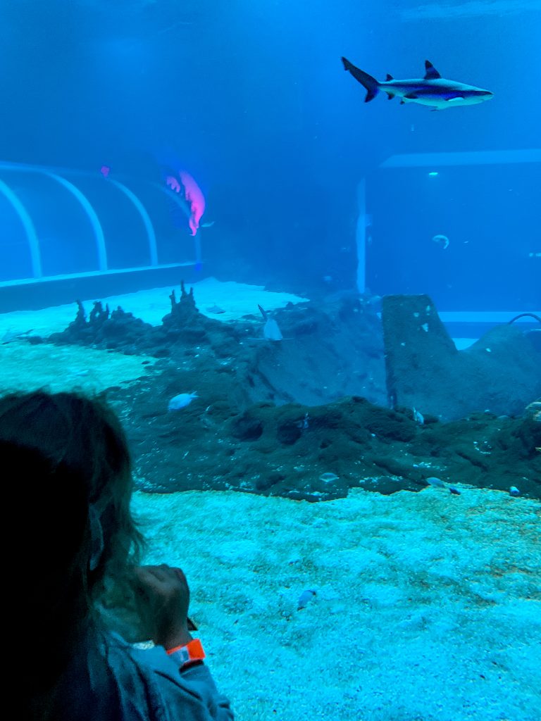 Kolejna część obiektu to dom makaków stylizowany na buddyjską świątynię. Dla Klary najważniejsza była część z akwariami i tunelem. Sorry, ale ten z Wrocławia to pikuś w porównaniu do łódzkiego. Płaszczki, rekiny (w przyszłości mają osiągać do 3 metrów długości), kolorowe ryby (w tym pokolec królewski – rybka Dory), rafa koralowa, a do tego sporo interaktywnych atrakcji dla dzieci. Nasze dziecko było zachwycone. A jak zobaczyła samolot leżący na dnie jednego z basenów, to już w ogóle był szał.